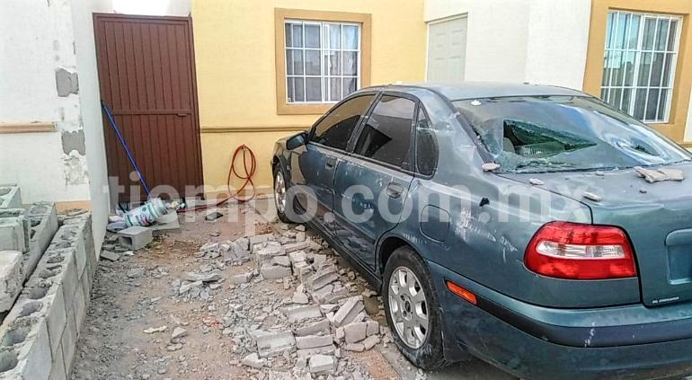 La barda alcanzó a dañar un vehículo Volvo que se encontraba estacionado a un lado de la barda pero en el lugar no quedaron personas lesionadas.