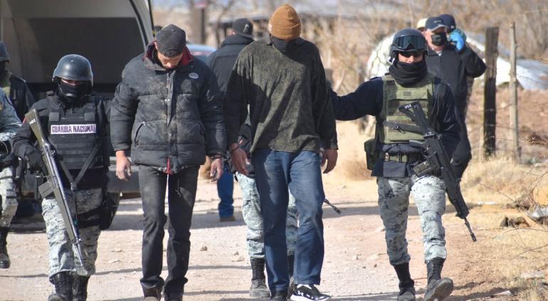 “Ellos fueron detenidos por elementos de la Guardia Nacional, cuando transitaban a bordo de un vehículo Nissan, línea Tsuru, y tras realizarles una revisión encontraron el cuerpo de un hombre sin vida en la cajuela, además de asegurarles un arma de fuego y cartuchos”, señalaron las autoridades .