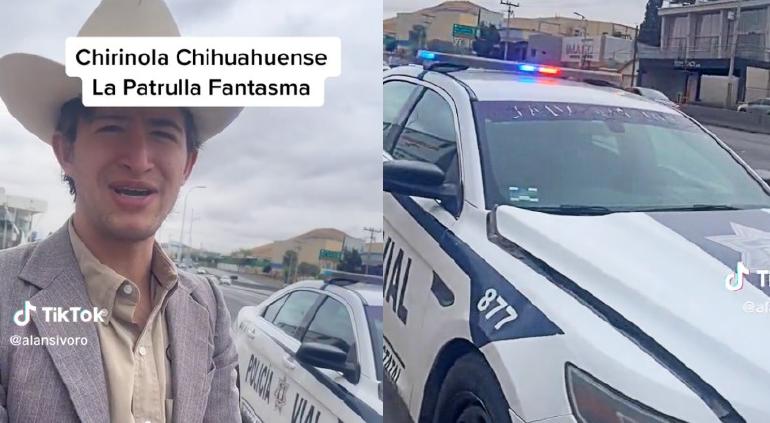 “¡Qué ha habido!, aquí de chirinolero en la chirinola chihuahuense. Aquí les presento la patrulla fantasma acá del estado de Chihuahua. Yo no soy de aquí, pero siempre que paso por aquí está la patrulla sola”, dijo.