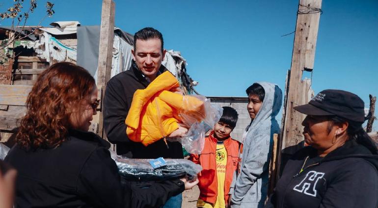 En un gesto solidario previo a las celebraciones de Navidad, el alcalde de Chihuahua, Marco Bonilla, junto con la presidenta del DIF Municipal, Karina Olivas, visitaron la colonia Vistas Ejidales para entregar cenas navideñas, chamarras, juguetes y dulces a las familias que allí habitan.