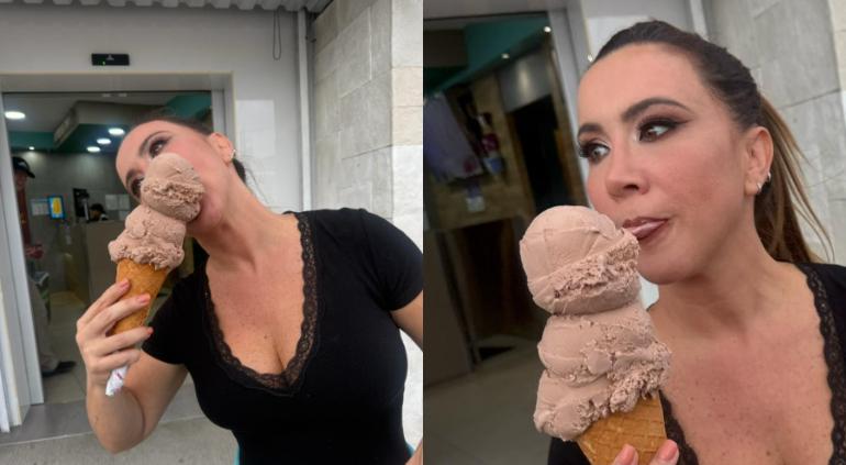 La actriz y conductora Mariazel estuvo en Chihuahua en un evento privado, pero aprovechó su vista para ir por una nieve.