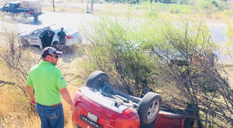Tras recibir el reporte, elementos de la Policía Vial arribaron al kilometro 2 de la carretera Chihuahua-Aldama, cerca de Complejo Estatal de Seguridad, para atender una volcadura de camioneta.