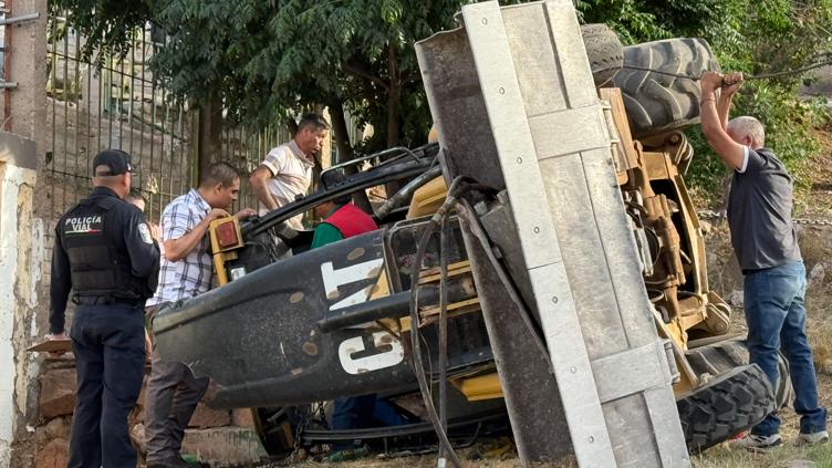 Una retroexcavadora volcó en el cruce de las calles 23a y J.J. Calvo, en la colonia San Rafael.