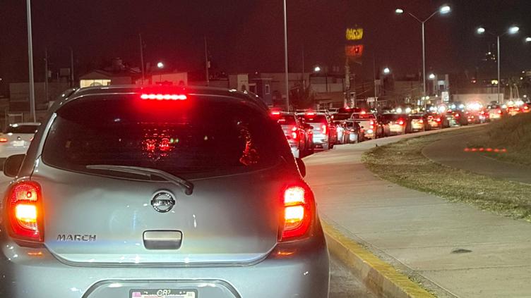 En el Periférico de la Juventud se formaron largas filas para acceder al estacionamiento del Estado Olímpico Universitario de la UACH, sitio donde se presentará Julión Álvarez.