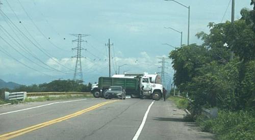 En las imágenes se pudo ver al menos un tráiler blanco, una unidad con traila azul, una pipa y un dompe, los cuales fueron atravesados para impedir la circulación.