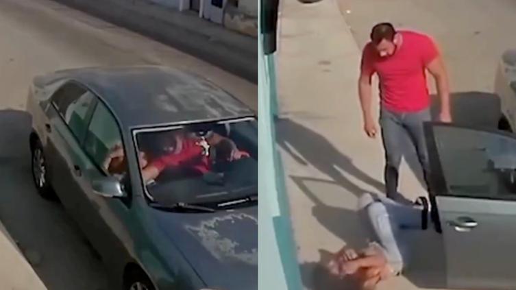 Cámaras de seguridad captaron el momento en el que una mujer fue agredida por un sujeto en un vehículo en Mérida, Yucatán, y luego empujada del mismo.