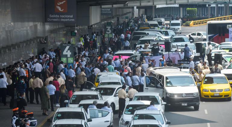 Este miércoles, taxistas planean congregarse en las terminales del Aeropuerto Internacional de la Ciudad de México (AICM) para exigir el bloqueo de los accesos a conductores de plataformas como Uber y DiDi.
