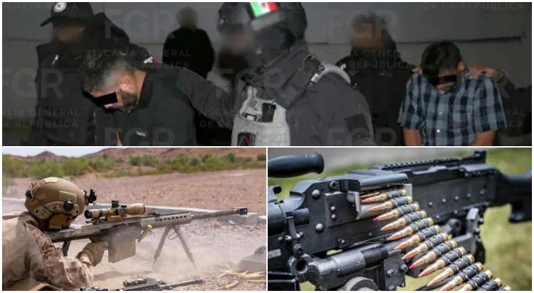 Destacan el fusil Scar 175, que es armamento que las Fuerzas Armadas mexicanas comenzaron a adquirir a partir del 2019, y el fusil Barret, por ser un arma de fuego pesado.