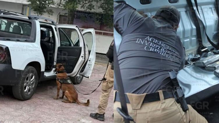 En las labores también participó personal de la Agencia de Investigación Criminal con apoyo de un binomio canino, lo que permitió ubicar los paquetes ocultos en la unidad.