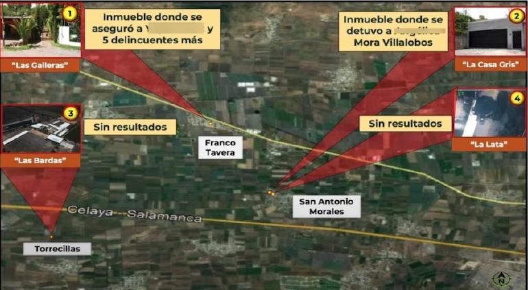 “Se toma la decisión de intervenir los 4 domicilios de manera simultánea, se mantienen una vigilancia aérea y el personal de campo desplegado, mantiene una vigilancia sobre las probables rutas de escape que se tenían los cuatro domicilios”, explicó Sandoval.