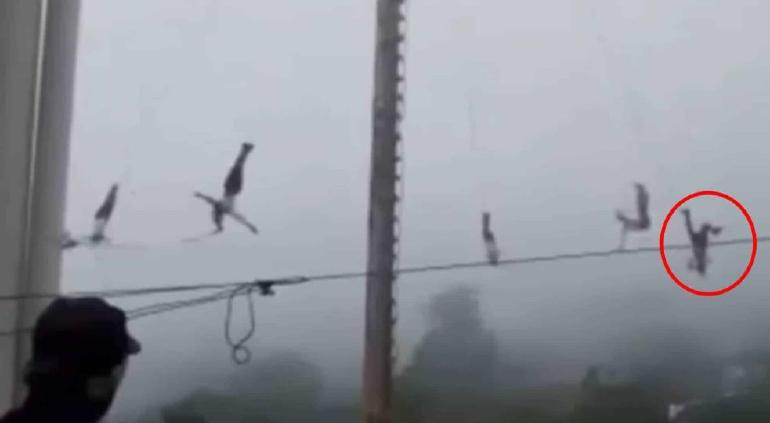 Autoridades mencionaron que el joven realizaba la presentación la cual consiste en atarse de pies de lo alto de un tronco de más de 20 metros de alto y girar de cabeza, cuando repentinamente la cuerda que lo sujetaba se soltó provocando que se desplomara con fuerza.