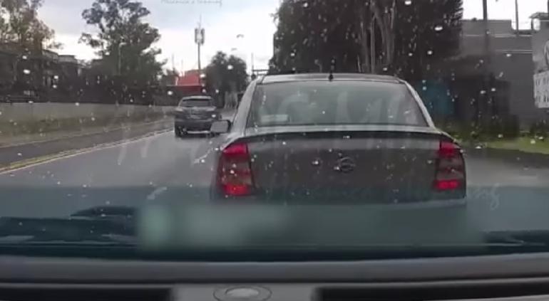 Un conductor, que tiene una cámara montada en su vehículo, logró captar cómo otro vehículo, un Chevrolet color gris le cierra el paso y comienza a frenar aparentemente para intentar provocar un accidente.