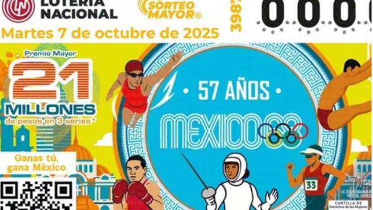 La Lotería Nacional presentó un billete especial para conmemorar los 57 años de los Juegos Olímpicos de 1968, un evento que dejó huella en el deporte, la cultura y la historia de México.