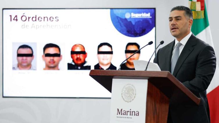 El secretario de Seguridad y Protección Ciudadana, Omar García Harfuch, informó sobre la detención de 14 personas presuntamente vinculadas a una red de huachicol fiscal. Entre los detenidos se encuentran tres empresarios, cinco marinos en activo, uno en retiro y cinco exfuncionarios de aduanas.