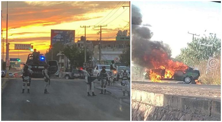 Asimismo, en la carretera Celaya-Juventino Rosas, delincuentes quemaron dos vehículos, al parecer para desviar la atención de los policías.