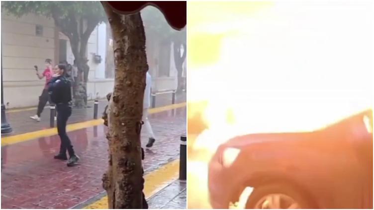 El video fue tomado por una persona que capta la calle Juárez y Reforma en la zona Centro, en donde hay policías y personas tratando de alejarse debido a que un transformador está en mal estado.