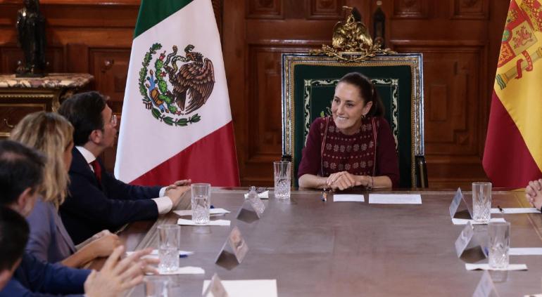 La Presidente de México, Claudia Sheinbaum Pardo, reveló la noche del miércoles que recibió en Palacio Nacional al Ministro de Relaciones Exteriores de España, José Manuel Albares Bueno, luego de años de ausencia de cualquier alto funcionario hispano en dicho lugar.