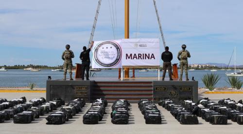 La Secretaría de Marina a través de la Armada de México en funciones de Guardia Costera, informa que, durante operaciones de vigilancia y seguridad marítima, se logró el aseguramiento de aproximadamente 188 bultos que representan varias toneladas de presunta cocaína, en espera de que las autoridades competentes determinen el peso ministerial.