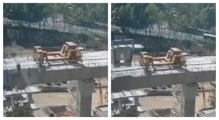 Instante en que colapsa pedazo en puente de Tren Interurbano 🎦