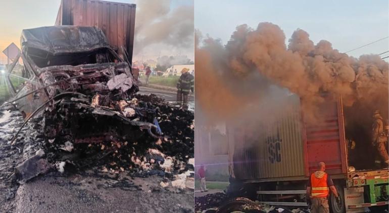 El tráiler se incendió, lo que provocó la muerte del conductor, quien lamentablemente quedó calcinado.