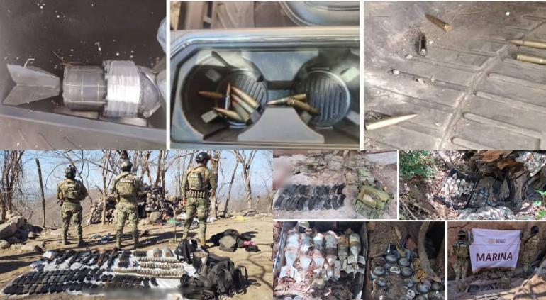 Luego de diversos operativos en Sinaloa, elementos del Ejército Mexicano y la Secretaría de Marina aseguraron arsenal y más de 70 explosivos.