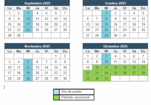 Compartió el calendario donde puede apreciarse que sesionarán los miércoles, incluyendo el próximo 10 de septiembre; hasta que lleguen las vacaciones el viernes 12 de diciembre.