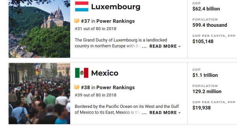 El mismo ranking presenta un resumen de la historia del país, explicación de su sistema político y una sencilla tarjeta que muestra que el país tiene un PIB per cápita de 59 mil 762 dólares, con una población de 325.7 millones de habitantes.