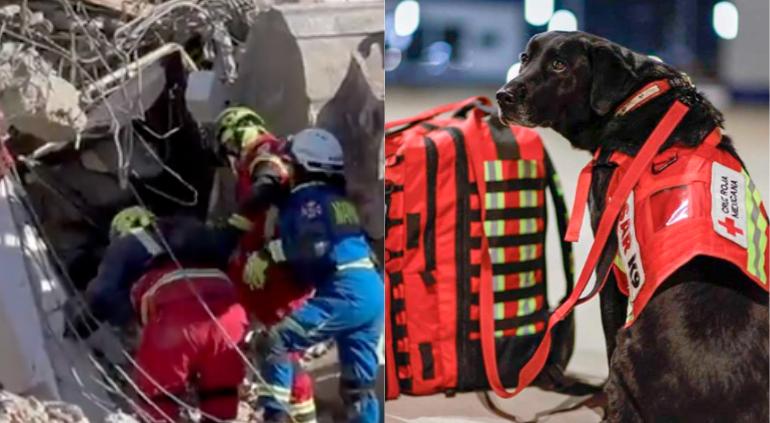 Los perros junto con rescatistas mexicanos fueron enviados el pasado martes a Turquía para ayudar en las labores de rescate debido a los múltiples derrumbes por el terremoto de 7.8 grados.