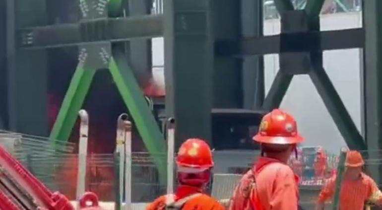 Trabajadores mismos fueron quienes grabaron la escena. En otras de las imágenes se puede apreciar cómo salen llamas detrás de un vehículo.