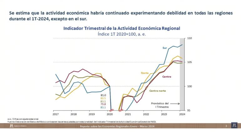 A nivel nacional, la actividad económica entre enero y marzo de este 2024 tuvo un avance de sólo el 0.3%, sin embargo, por regiones esto es distinto.