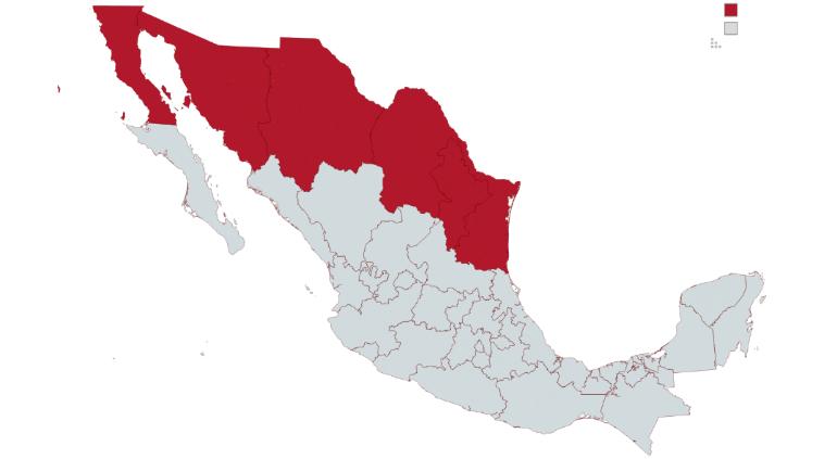 Sin embargo, la región norte, que comprende los estados de Baja California, Sonora, Chihuahua, Coahuila, Nuevo León y Tamaulipas presenta un retroceso del 0.5%.