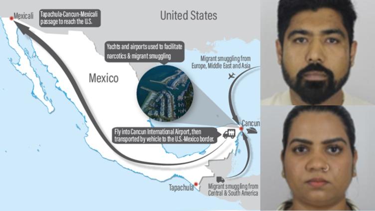 En colaboración con miembros de la organización criminal transnacional Hernández Salas, designada por la OFAC, la organización Bhardwaj ha utilizado el corredor Tapachula-Cancún-Mexicali para el tráfico de migrantes indocumentados hacia Estados Unidos.