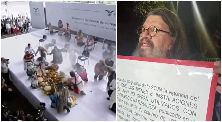 Además del"ritual de consagración de bastones de mando" en Cuicuilco, también realizaron un acto de "purificación" de las instalaciones de la SCJN, en el cual se arrodillaron y pidieron la "guía" de Quetzalcoatl y Tonantzin.