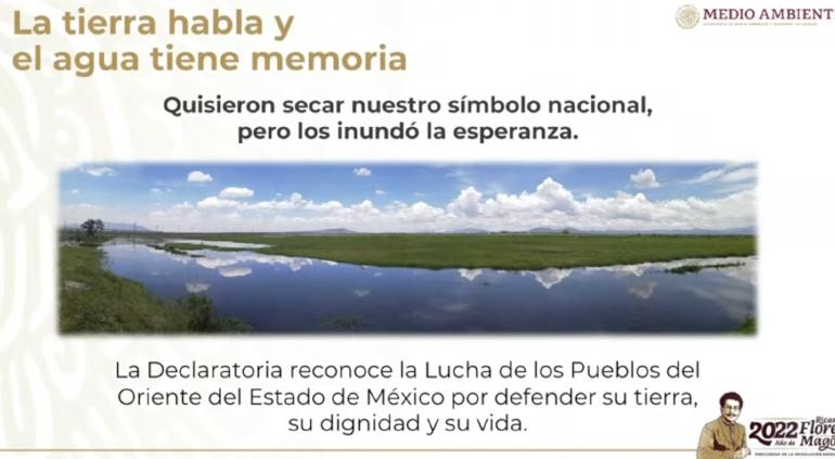 Decretaron el lago de Texcoco como Área de Protección de Recursos Naturales, por lo que es considerada un Área Natural Protegida, ante lo que mostraron planes para rehabilitarlo y un video.