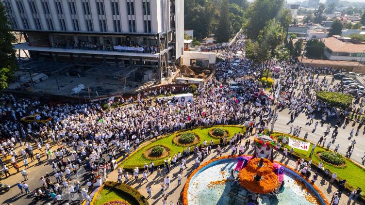 Empresas y trabajadores de Uruapan (Michoacán) participaron un paro general, mientras que miles de personas marcharon para exigir justicia por el asesinato del alcalde Carlos Manzo, así como por solicitar paz en el municipio.
