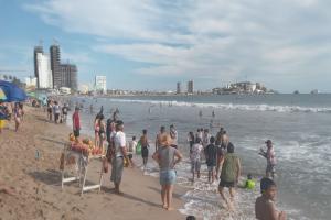 Por medio de redes sociales, la Policía de Mazatlán alertó a los bañistas sobre un fuerte oleaje en la playa.