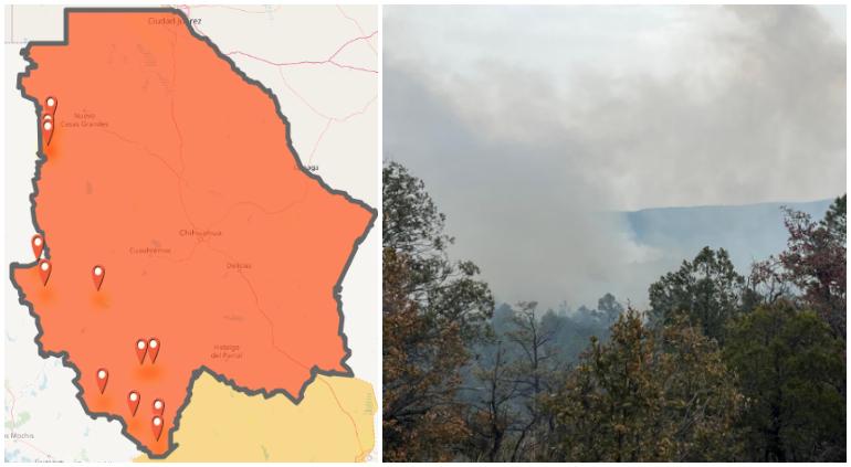 La zona serrana del estado de Chihuahua está repleta de incendios forestales activos, algunos superando el centenar de hectáreas afectadas y un par con un tamaño cercano a 4 mil hectáreas.