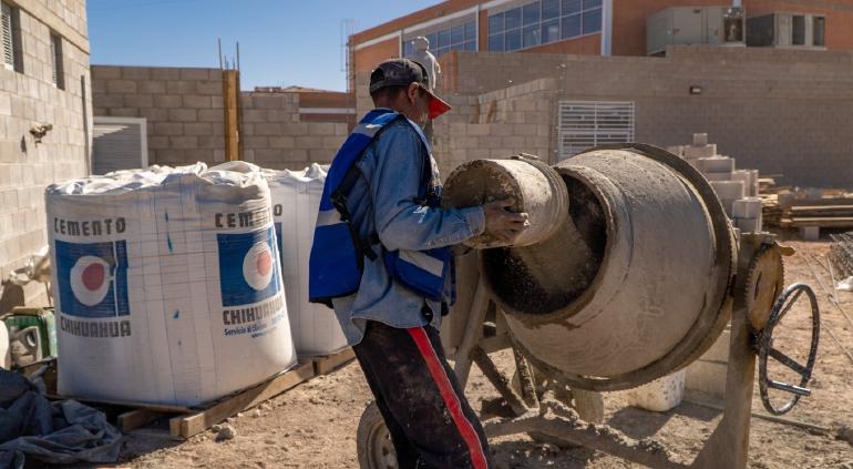 Actualmente, los trabajos se enfocan en la instalación del sistema hidráulico, el enjarre grueso de la fachada y labores en el interior, como el relleno y compactación de caliche, además de la colocación de la estructura que servirá de base para la meta losa.