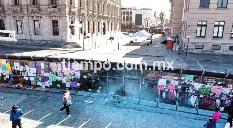 La muralla de vallas metálicas que protegieron Palacio de Gobierno, Museo Casa Chihuahua y la Plaza Hidalgo, únicamente resultaron con diversas pintas.