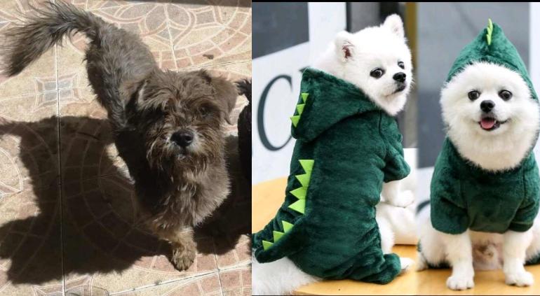 Solicitan ayuda para dar con el paradero del perrito “Chango”, un Schnauzer que subió al camión en la Zarco, iba vestido de dinosaurio.