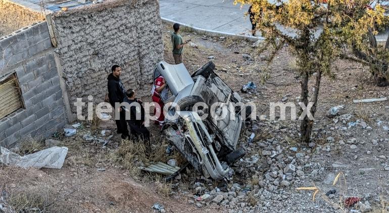 Cae de barranco y vuelca en la 20 de Noviembre; la rescatan