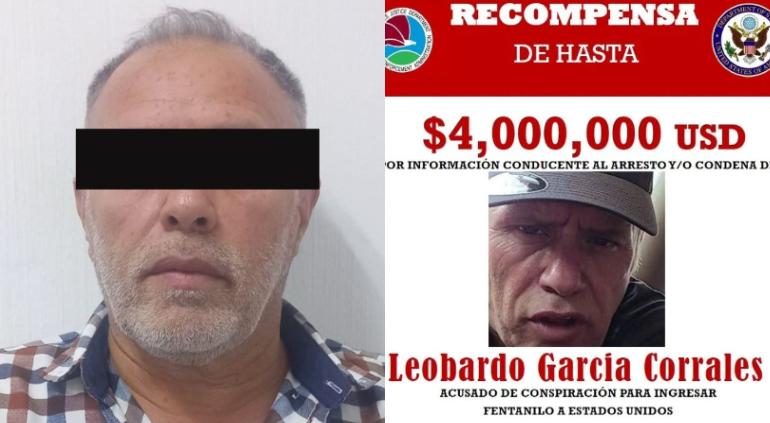 Leobardo García Corrales, era buscado por las autoridades de Estados Unidos acusado de los delitos de delincuencia organizada, contra la salud y violación a la ley federal de armas de fuego y explosivos.