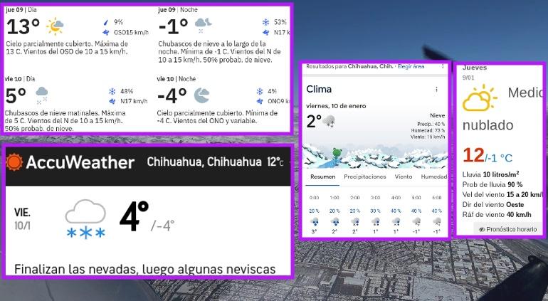 La ciudad de Chihuahua espera aguanieve o lluvia engelante la noche del el miércoles 8 y caída de nieve la noche del jueves 9 y mañana del viernes 10 de enero, según tres pronósticos privados y el público de Conagua.