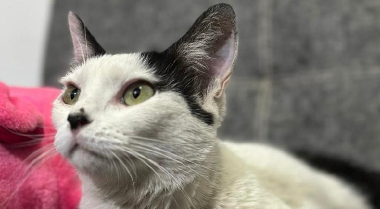 “Luciérnaga” es una gatita de color blanco con mancas negras, tiene ojos verdes, es muy friolenta. Como característica especial, tiene una mancha en forma de corazón y una cortadita en su nariz. Es una felina de casa, por lo que no sabe andar sola en la calle.