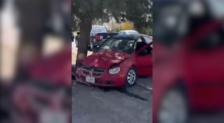 Una joven de 19 años de edad quien manejaba un Dodge Neón rojo circulaba sobre la Vialidad Sacramento en sentido Norte-Sur. Cuando estaba apunto de llegar a la calle Monte Albán se descontroló, subió al camellón y se estampó contra un árbol.
