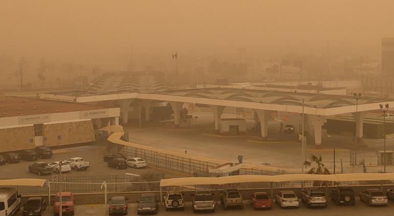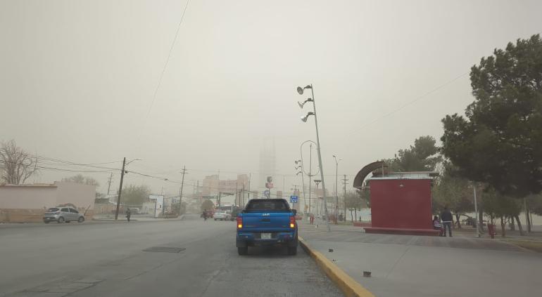 Durante esta tarde, los fuertes vientos arreciaron en Ciudad Juárez y las calles se ven cubiertas de arena.