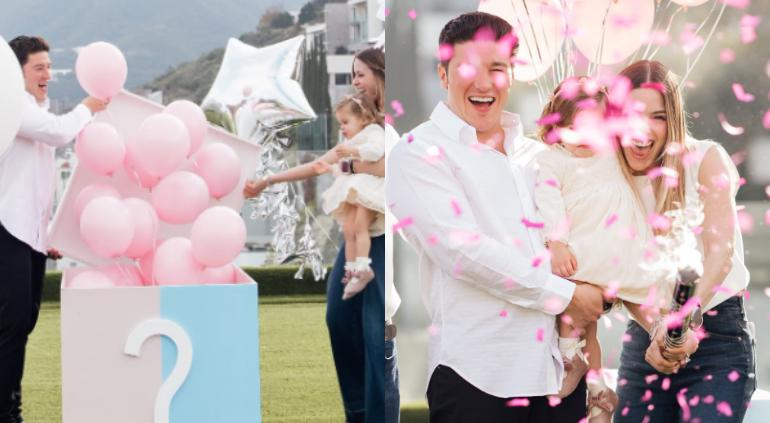 Mariana y su esposo, el gobernador de Nuevo León, Samuel García abrieron una caja con globos para revelar el sexo de su segundo bebé.