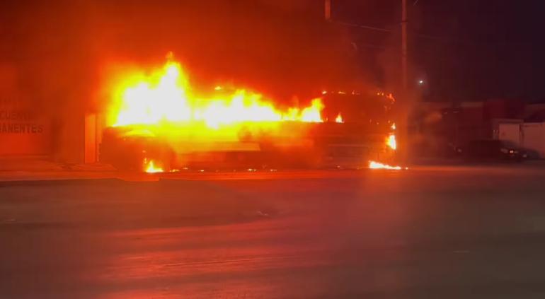 Esta mañana se incendió un autobús de personal en la avenida Equus, Bomberos llegaron al lugar pero la unidad quedó reducida a cenizas.
