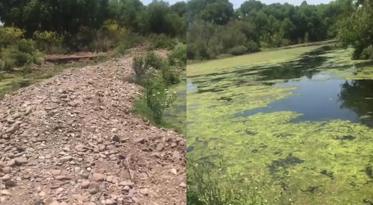A través de redes sociales compartieron un video en el que acusan la construcción irregular de una represa en el río Chuviscar en Aldama.