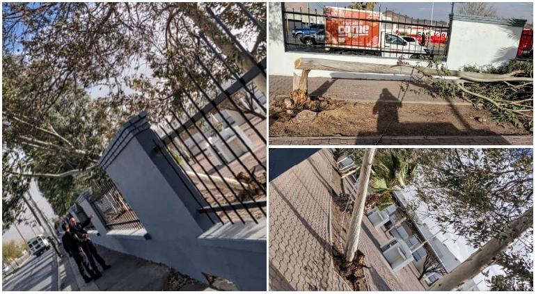 Elementos de Bomberos atendieron al menos cuatro incidencias relacionadas por los fuertes vientos que azotan en la ciudad de Chihuahua, problemas con dos árboles, una lona y láminas de un domicilio.